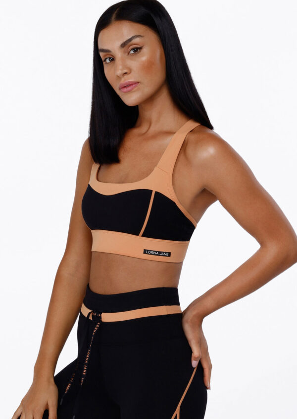 SPORTOVNÍ PODPRSENKA SUMMIT spojuje unikátní design s maximální funkčností. Kombinace „karamelové“ barvy s černou dodává podprsence jedinečný vzhled, který opticky zvýrazňuje horní partie. Tato podprsenka je ideální nejen pro náročné sporty, jako je běh, ale také jako stylový doplněk každodenního outfitu, který přitáhne pozornost.